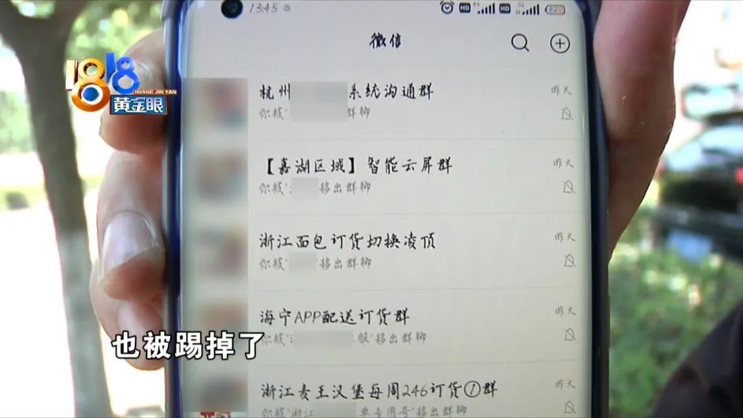 小肖:“系统沟通群就是收银机的群,智能云屏群就是电视机广告的群,也被踢掉了,还有一个面包订货群也被踢掉了。(下面还有什么店长群、人事群、员工群。)特区群还有小组群、营业额群,还有什么区域评估整改群。(有16个群啊?)一共16个群都被踢掉了。”