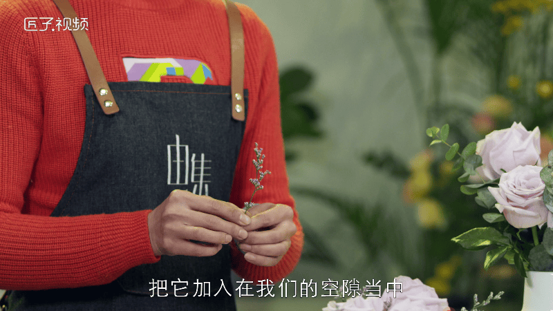 4.花材一定要高低有层次,第一朵花材放在正中间的位置;