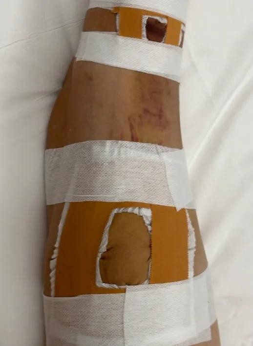 而且他最近更新的动态里,有一张腿部受伤的照片。