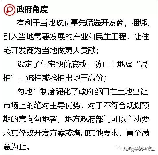 勾地制始于香港,97年亚洲金融危机后,香港楼市低迷,开发商停止购地。地价一泻千里,香港政府担心土地贱卖,采用“勾地”制度,若发展商对公布的土地感兴趣,主动提出申请,开出符合市场价格的底价,该土地才会以公开招标形式出售。