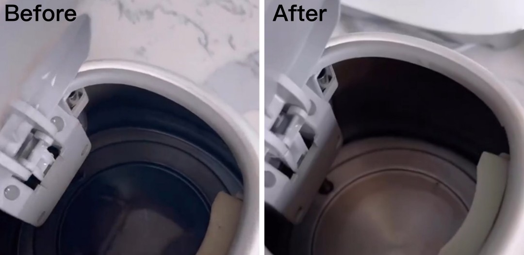 把水倒出就完成了,不用动手清洗,水垢自然去除。
