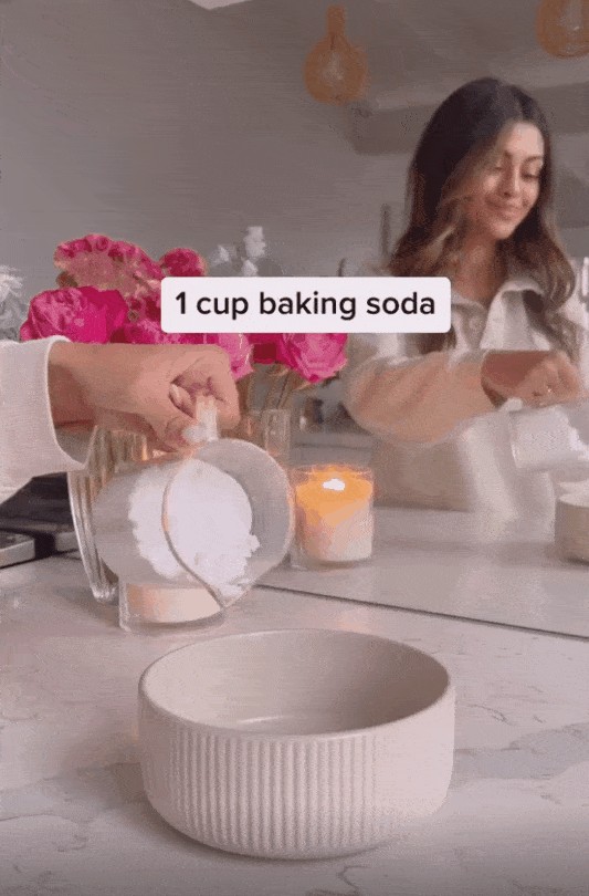 1杯小苏打1/3杯洗洁精1大茶匙水