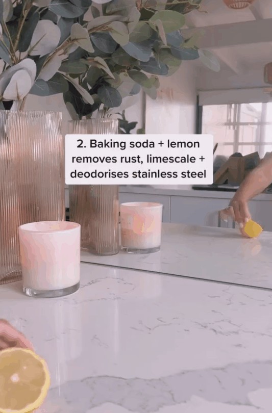 不妨能直接利用酸性的柠檬,再加上小苏打的清洁力,能一并去除水槽油污和水垢,快速简单,又能留下清香气味。