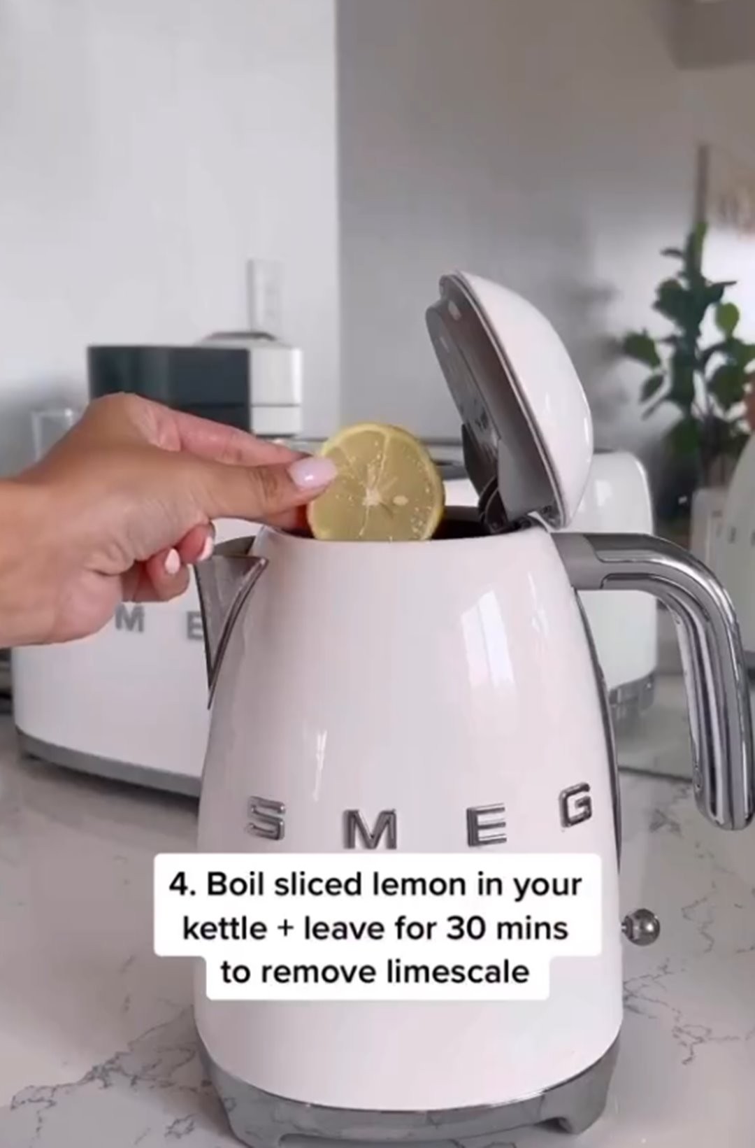 柠檬对去除水垢相当有效,热水壶底部长期累积的水垢,不妨就用柠檬来解决!热水壶里丢两、三片柠檬,同时加水煮沸,烧热后再静置30分钟。