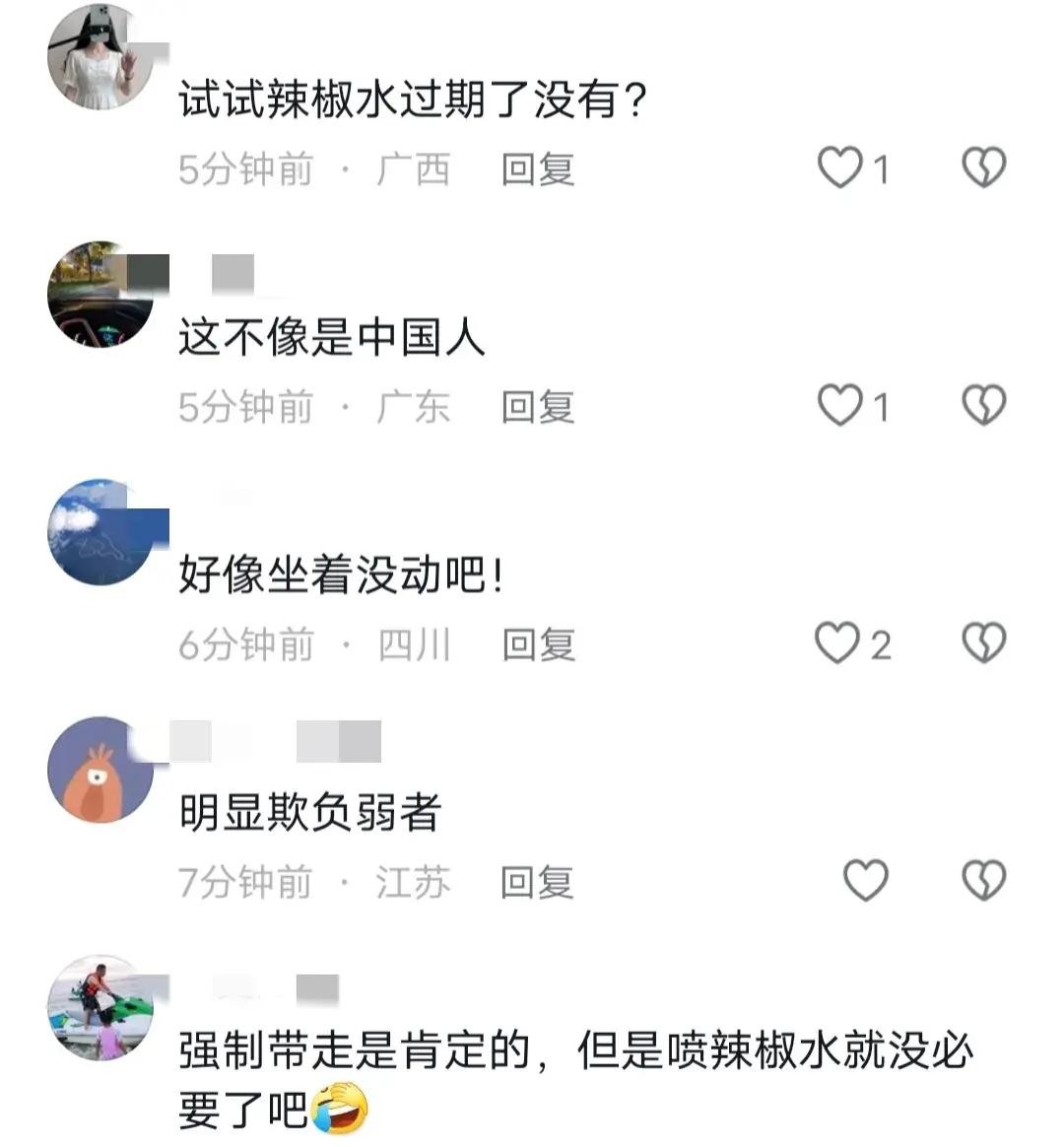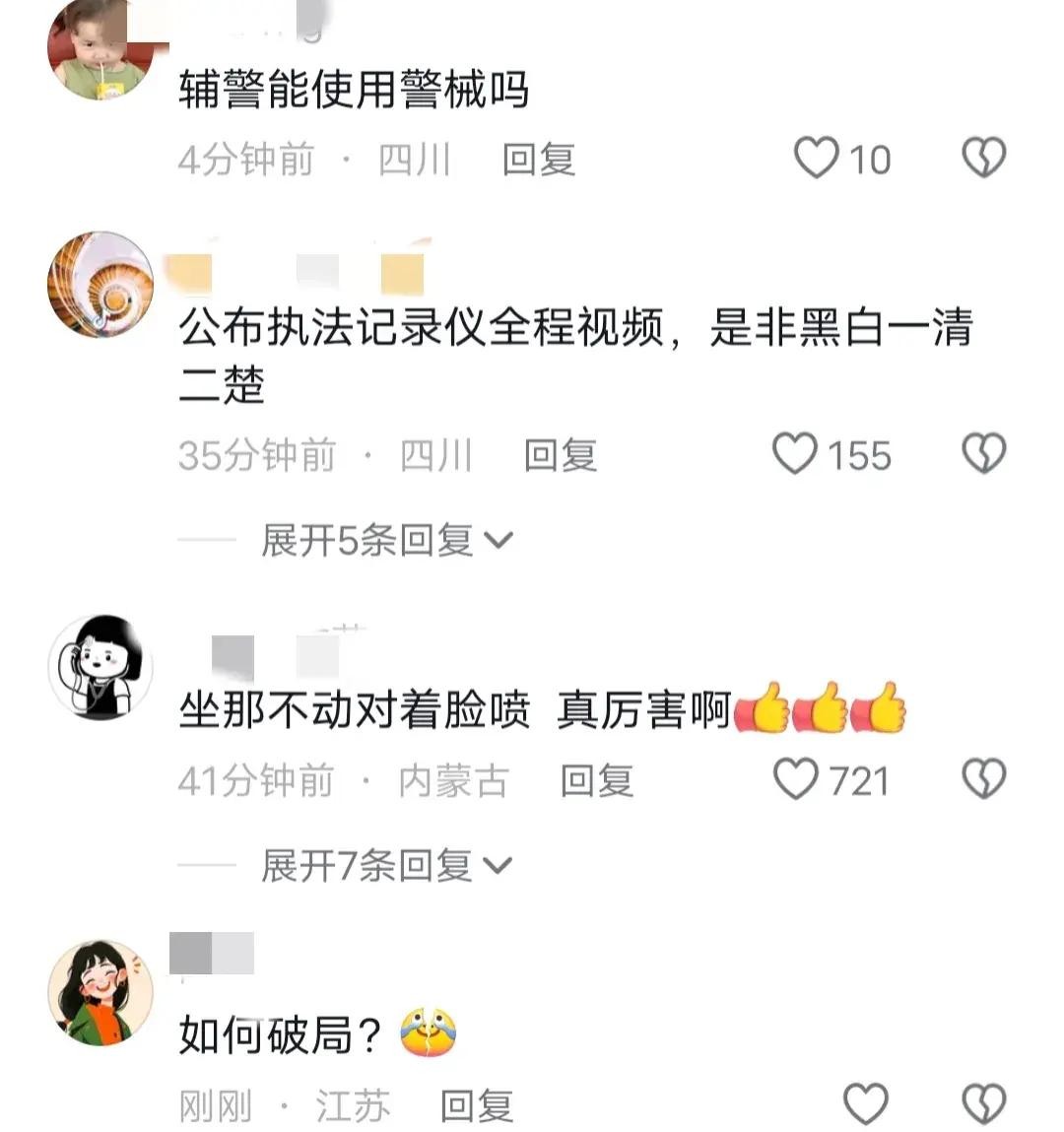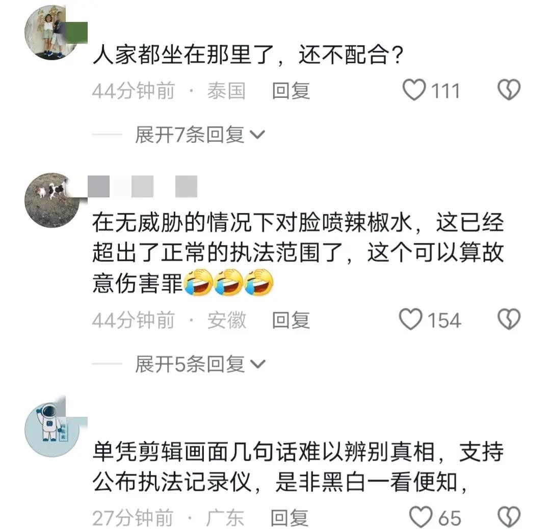 再者,过度张力对峙还是息事宁人?喷辣椒虽不算违法,但明显激化了矛盾。而作为执法者,是否可以用更睿智的方式化解争执?