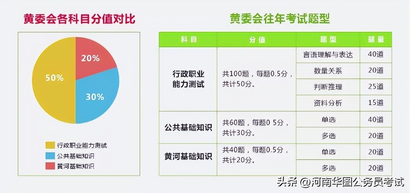 黄委会笔试内容:《职业能力测试》《公共基础知识》《黄河基础知识》,三科的权重分别为5:3:2,满分100分,题型为单选、多选。各科目往年题量如图所示,大家可以做个参考~