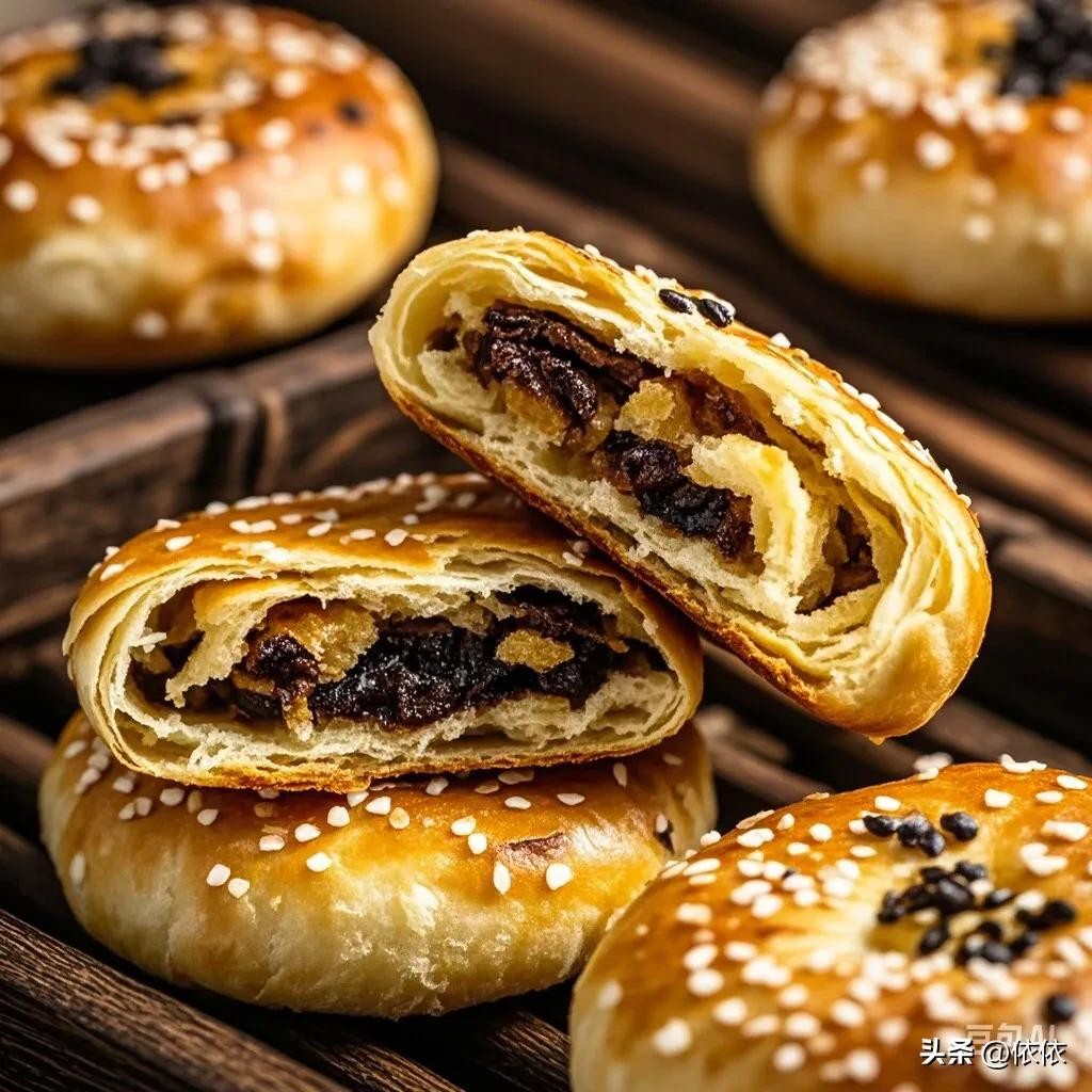 • 黄山烧饼:外皮酥脆,内馅咸香,梅干菜和猪肉的搭配相得益彰。