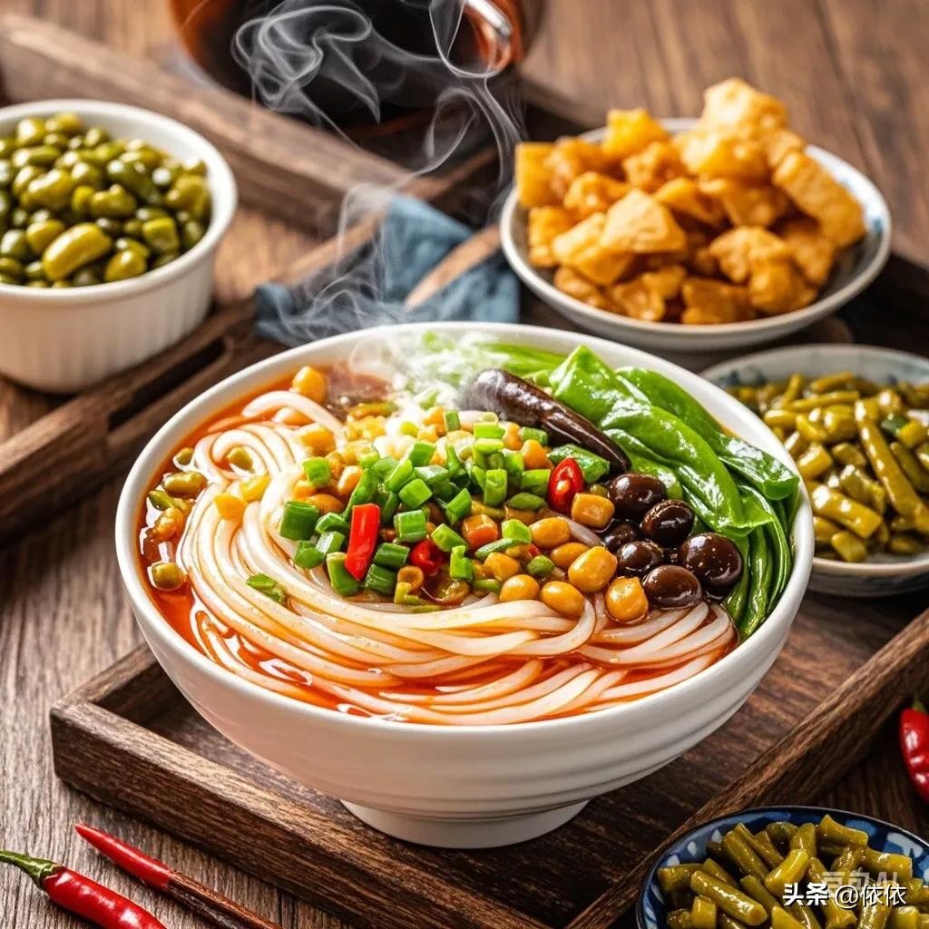 • 螺蛳粉:具有独特的臭味,酸笋、腐竹、木耳、花生等配料丰富,米粉爽滑,汤头酸辣过瘾。