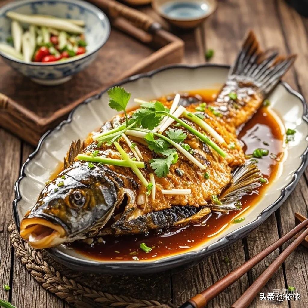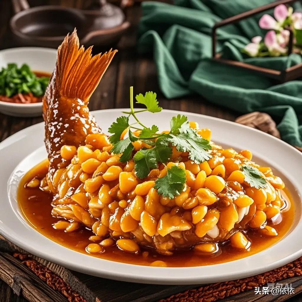 • 西湖醋鱼:鱼肉鲜嫩,酸甜可口,带有淡淡的蟹味。
