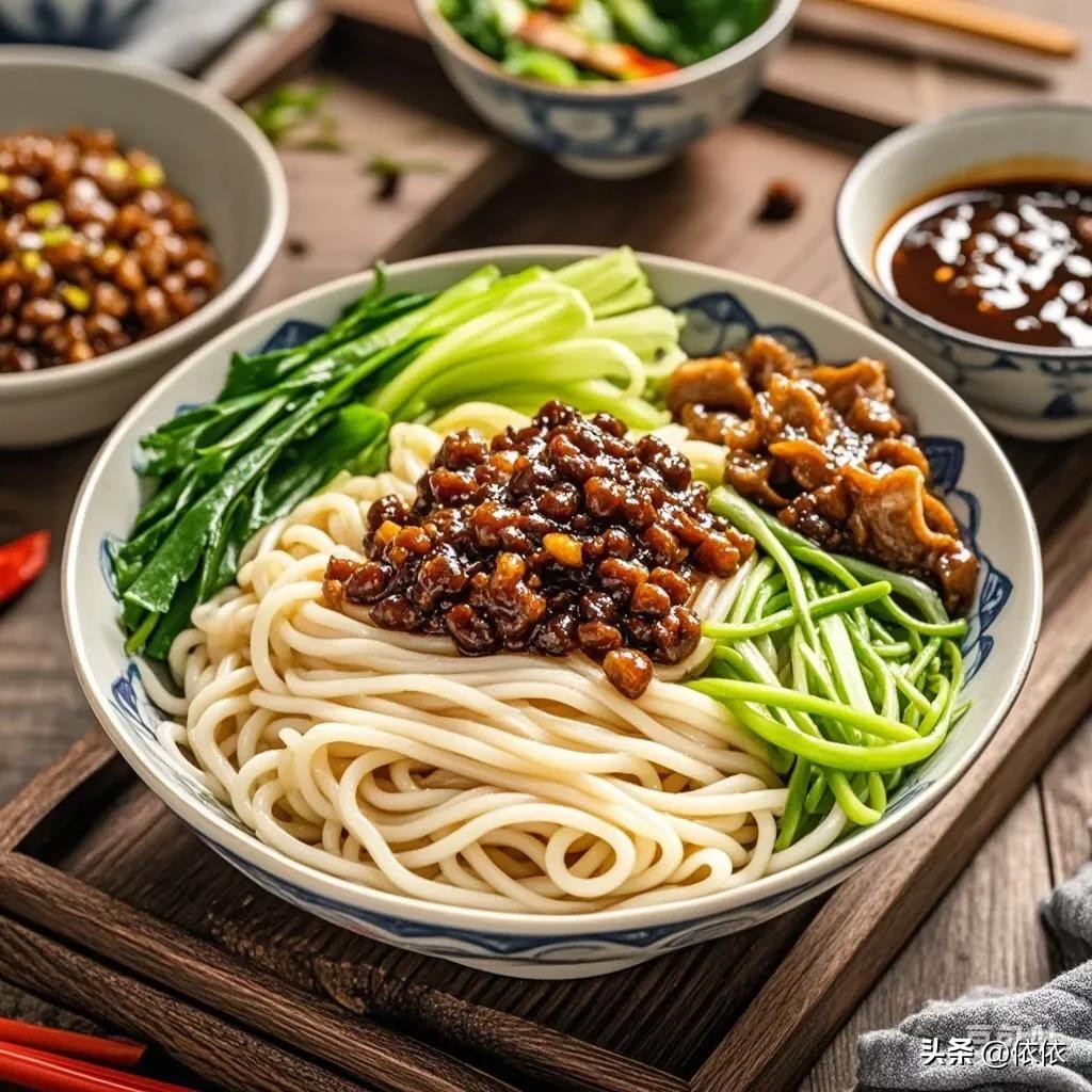 • 炸酱面:筋道的面条配上肉酱和各种菜码,酱香浓郁,口感丰富。