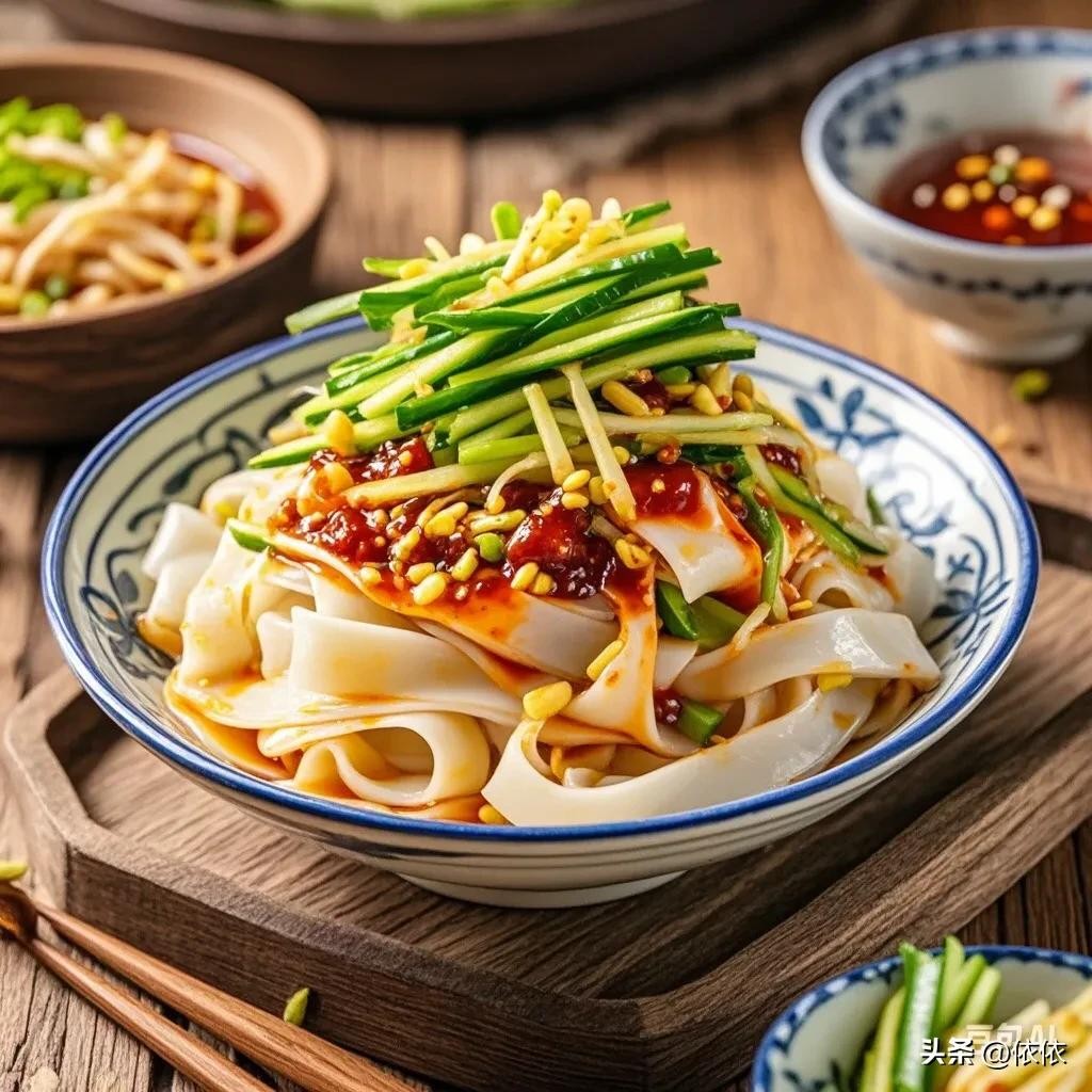 • 凉皮:用面粉或米粉制作的凉皮,配上辣椒油、醋、蒜水等调料,爽滑可口。