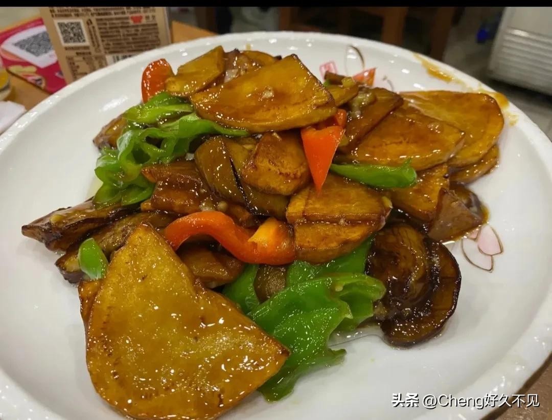 6. 将煎好的土豆块、炸好的茄子和青椒一起放入锅中翻炒均匀,让汁液均匀地裹在食材上。