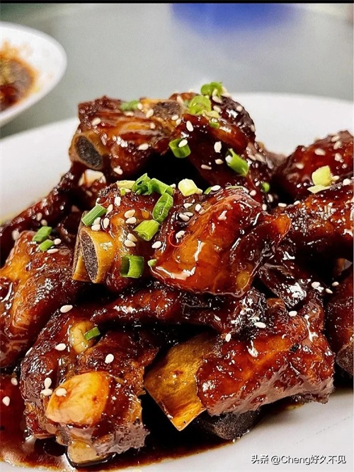 7. 最后,将煮好的糖醋排骨装盘,撒上适量的葱花即可。