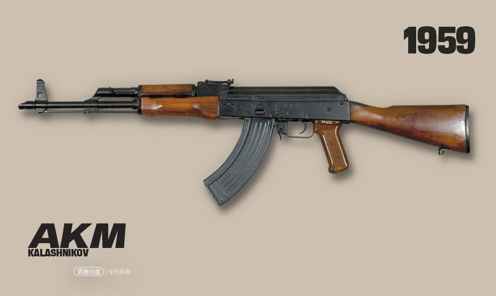 AKM是由卡拉什尼科夫本人开发的,AK系列的改进版本,采用7.62×39毫米弹药,于1959年推出,相较于AK47,AKM的重量较轻,射击精度和稳定性也有所提升,在冷战期间,AKM成为苏联大规模出口的代表性武器,其总产量至少在一千万把以上,除了被大量国家作为制式武器采用以外,AKM也是许多武装组织的代表性武器,AKM及其仿制品,可能是如今AK枪族中使用最广泛的枪型之一。