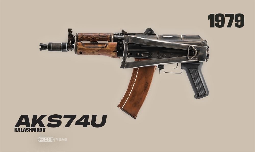 AKS74U卡宾枪,由卡拉什尼科夫本人研发,是AK74的独立衍生版本,其实际使用效果与冲锋枪类似,采用5.45×39毫米弹药,于1979年推出,AKS74U的枪身较短,且射速较快,主要配发给苏联特战部队和空降部队等作战单元使用,此外,也是苏联克格勃特工的常备武器之一,目前,AKS74U及其仿制品,仍是许多国家的制式武器,并受到一些武装组织的青睐。