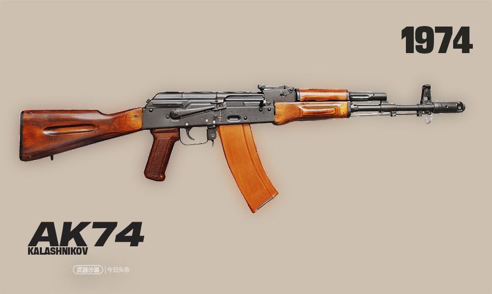 AK74是由卡拉什尼科夫本人开发的,苏联大规模装备的第一款小口径突击步枪,采用5.45×39毫米弹药,于1974年推出,AK74的设计蓝本为AKM,并在此基础上进行了大量新型的设计,以适应缩小的弹药口径,相较于AKM,AK74的弹药重量更轻,枪口初速和射击精度也有所提升,AK74系列突击步枪,至今仍是俄罗斯军方的制式突击步枪。
