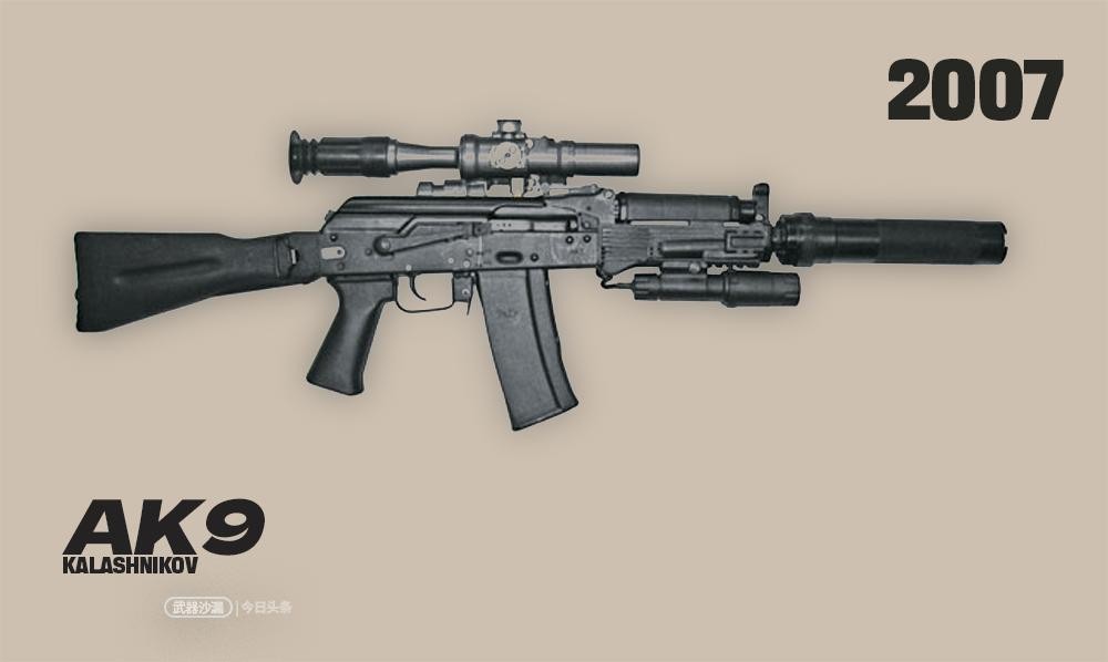 AK9是以AK100系列为基础,适用于特种作战领域的轻型突击步枪,采用9×39毫米亚音速微声步枪弹,能够加装消音器等战术组件,尽管AK9的性能无可挑剔,但是其产量较小,使用范围也较为有限。