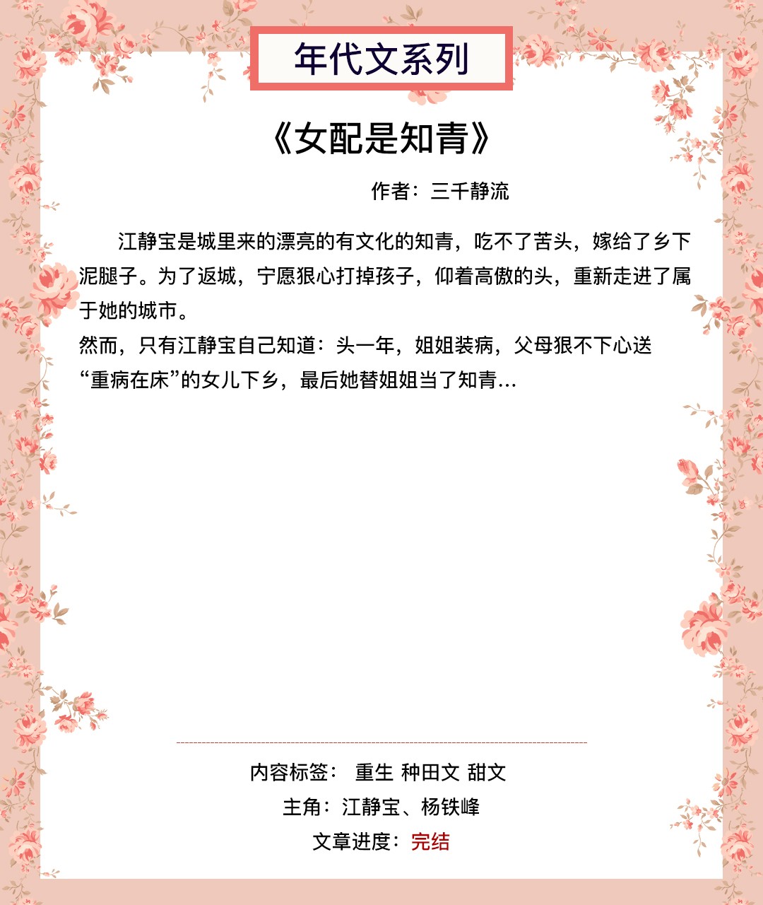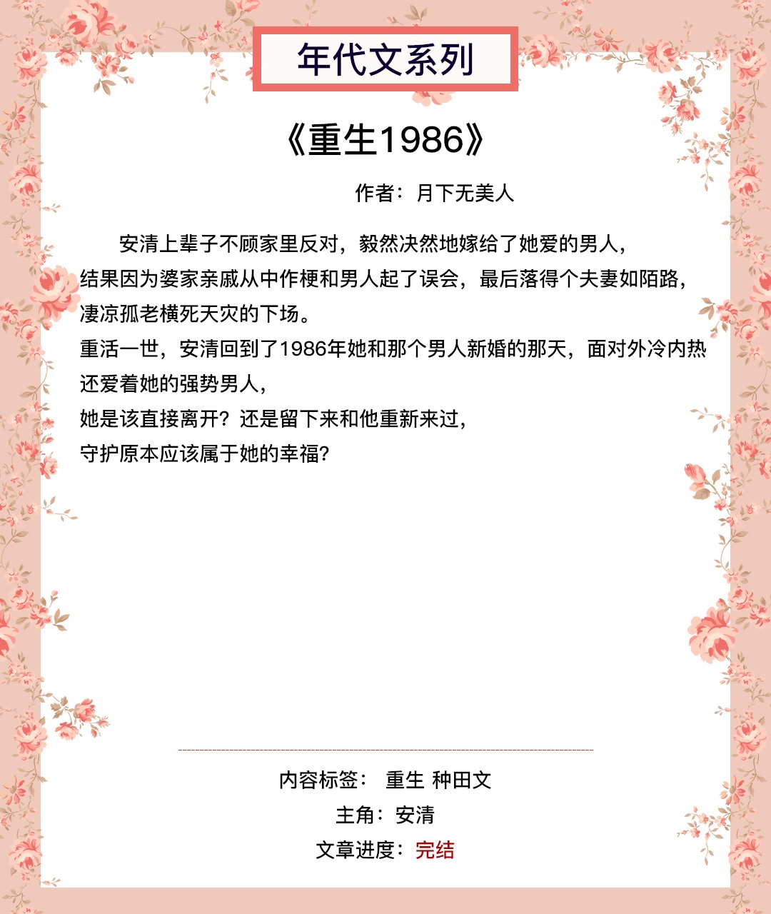 今天给大家整理我之前看过的一批年代文!各式各样的穿书、重生、种田,甜宠。希望大家喜欢!