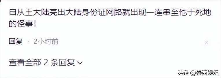 不过也有部分觉得这一系列事件都疑点重重,自从王大陆前段时间逃兵役被捕,亮出大陆身份证之后,网络就一直出现一连串要置他于死地的怪事。
