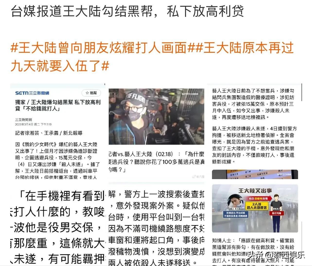 2025年2月,王大陆因逃兵役问题被查扣手机。戏剧性的是,检方在查看手机聊天记录时,意外发现了与打人事件相关的内容及视频。