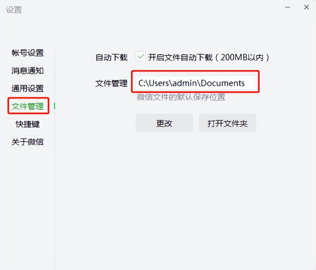 其次,复制文件路径,并打开该路径。我的文件文件路径是C:UsersadminDocuments,是安装微信APP的默认路径,请按照路径打开微信记录的文件夹;