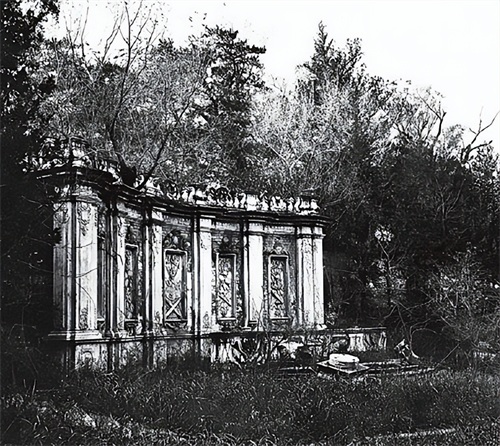 圆明园内观水法的石屏风昔日旧照。于1900年时期,作恶多端的八国联军再次攻入北京城,随后亦是冲到了圆明园进行烧杀抢掠。当八国联军带着满载的宝物离去后,圆明园周边的百姓们、山贼土匪亦是趁机进入其中,将园内的一些零散宝物、砖块拾走,并砍伐了不少树木,使得圆明园内遭到惨不忍睹的彻底破坏,不久后就成了荒草萋萋、满眼荒凉之地。