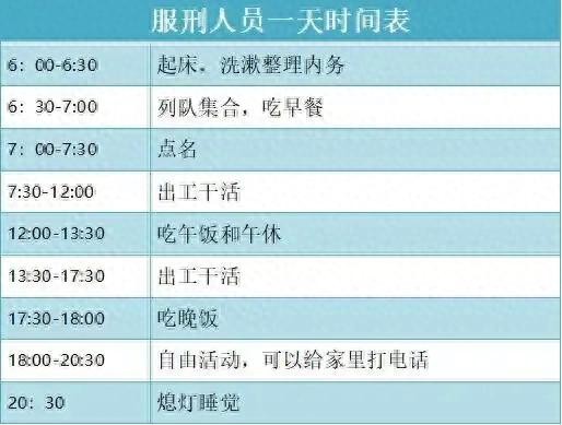 - 洗漱就寝:晚上9点左右,犯人开始洗漱,准备就寝。9点30分左右,监狱会熄灯,犯人进入休息状态。