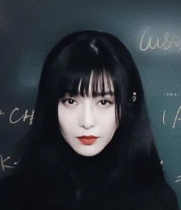 范冰冰披散着头发站在黑板面前,黑板上写满了化学公式,她的肤色白得不太正常,眼神阴郁得看着镜头。
