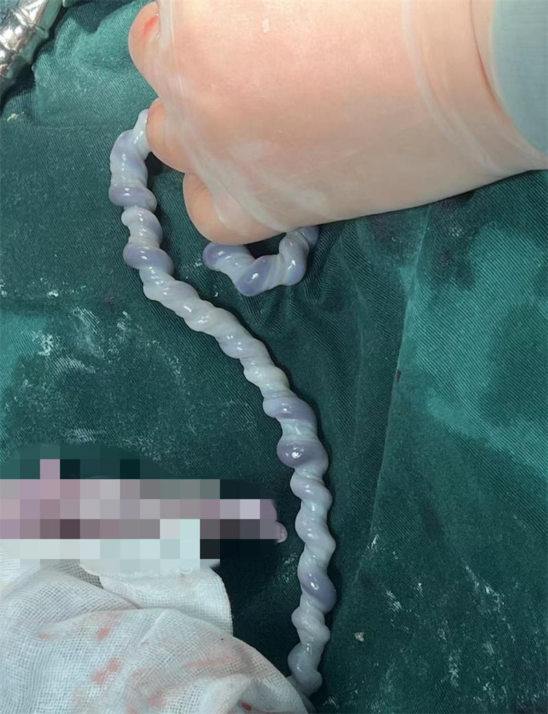 △ 长约 50 厘米的脐带扭转了 54 圈 通讯员供图