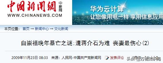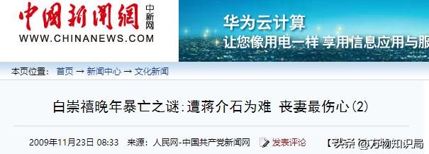 中国新闻网——白崇禧晚年暴亡之谜:遭蒋介石为难 丧妻最伤心(2) 2009-11-23