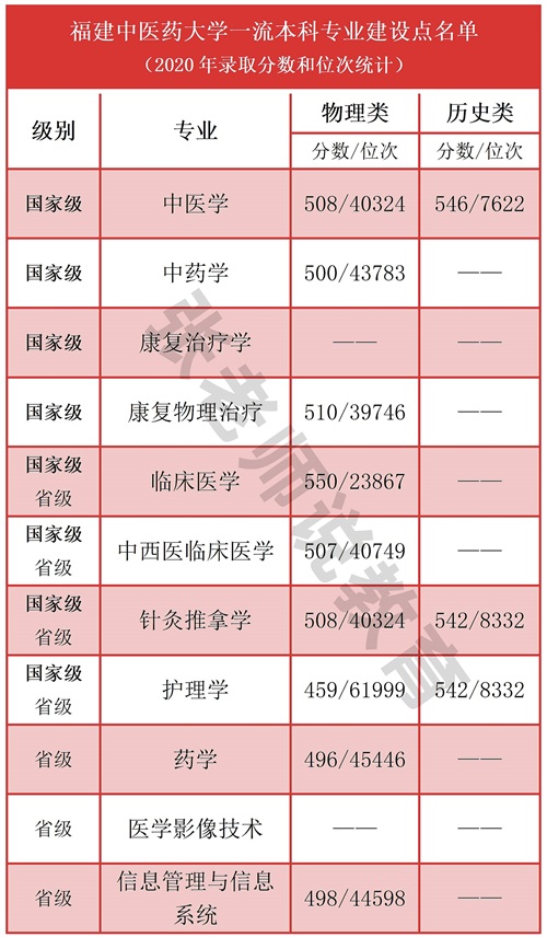 1、福建中医药大学有8个入选国家级一流本科专业建设点: