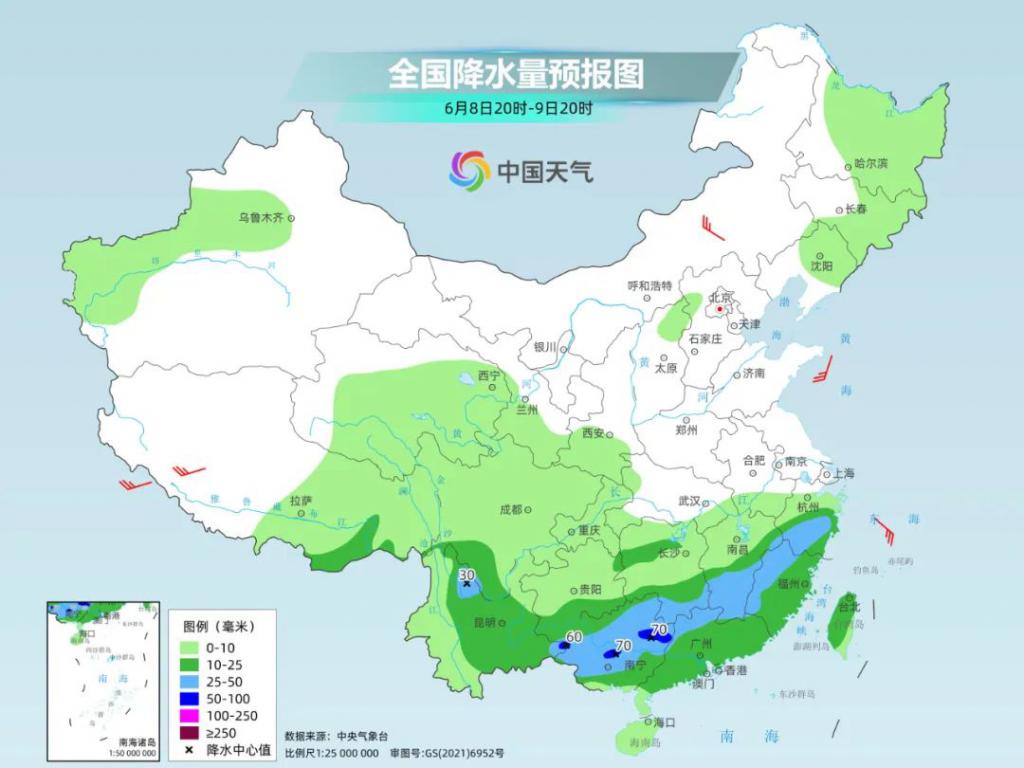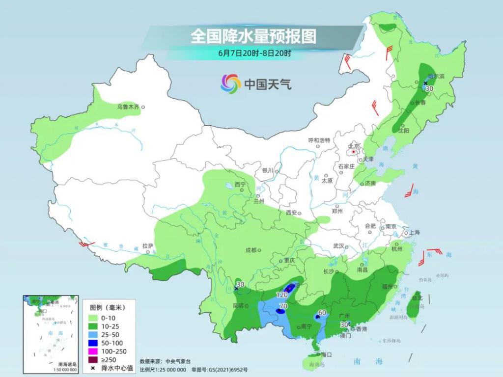 中央气象台预计,7 日至 10 日,贵州、江南大部、华南等地将有中到大雨,其中,贵州中南部、广西、湖南南部、江西南部、福建西部、广东北部等地有暴雨或大暴雨,并将伴有短时强降水或雷暴大风等强对流天气。