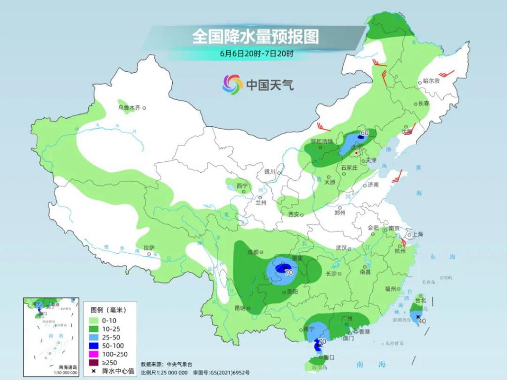 后天起,南方的雨带会有所北抬,长江中下游以南大部地区将沉浸在雨水之中。中央气象台预计,7 日至 10 日,贵州、华南中北部、江南大部仍有中到大雨,局地暴雨或大暴雨。