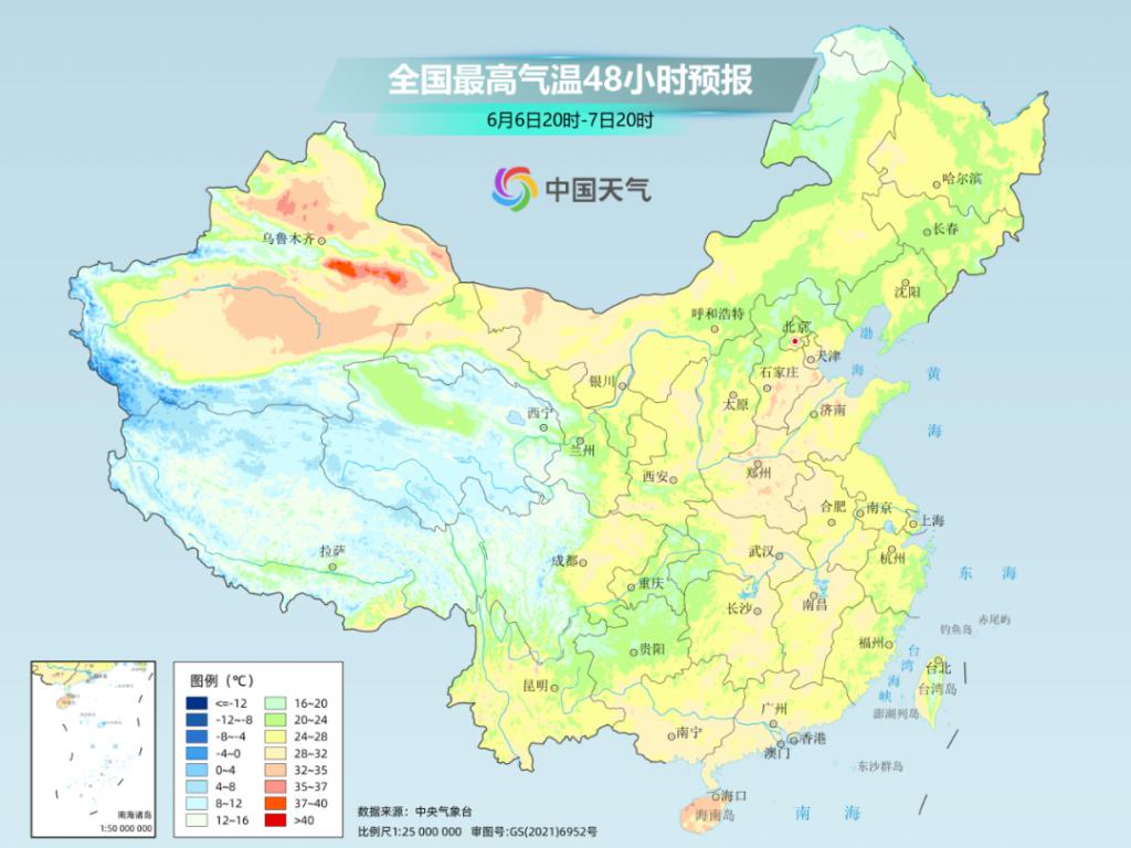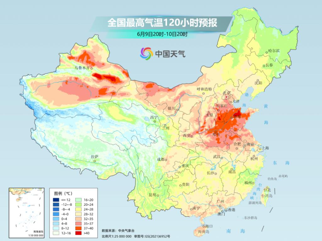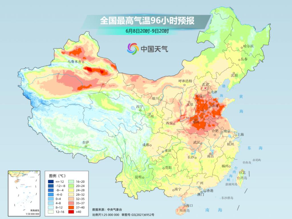 届时,北方地区将变得 " 热辣滚烫 " 起来。中央气象台预计,8 日至 14 日,华北大部、黄淮、江淮及湖北北部、陕西关中、新疆北部和东部、内蒙古中西部等地高温日数普遍有 5~7 天,日最高气温一般有 35~38 ℃,其中河北南部、河南、山东、陕西关中、新疆北部和东部等部分地区最高气温可达 39~42 ℃,局地最高气温将接近或突破 6 月极值。高温最强时段在 10 日至 13 日。