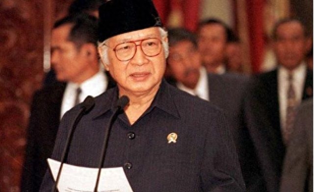 苏哈托向国际货币基金组织IMF求助,为此实行经济改革。他赤裸裸的利用权利,宣布民选总统梅加瓦蒂无效,自己继续连任总统。