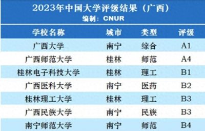 - 广西高校2023年档次排名:广西大学引领,桂林电子科大居第3档