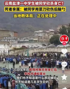 - 痛心,云南中学生被年仅15岁同学砍杀身亡,校园霸凌再次上演 云南一中学发生学校惨剧,云南省昭通市盐津县发生一起校园惨剧。近日云南昭通,一名中学生在校园里被一名同学砍杀...